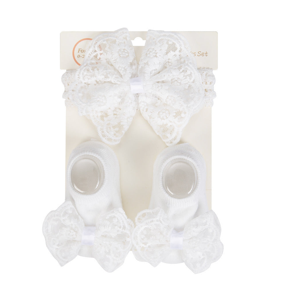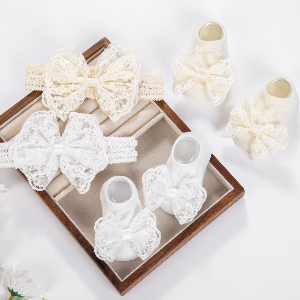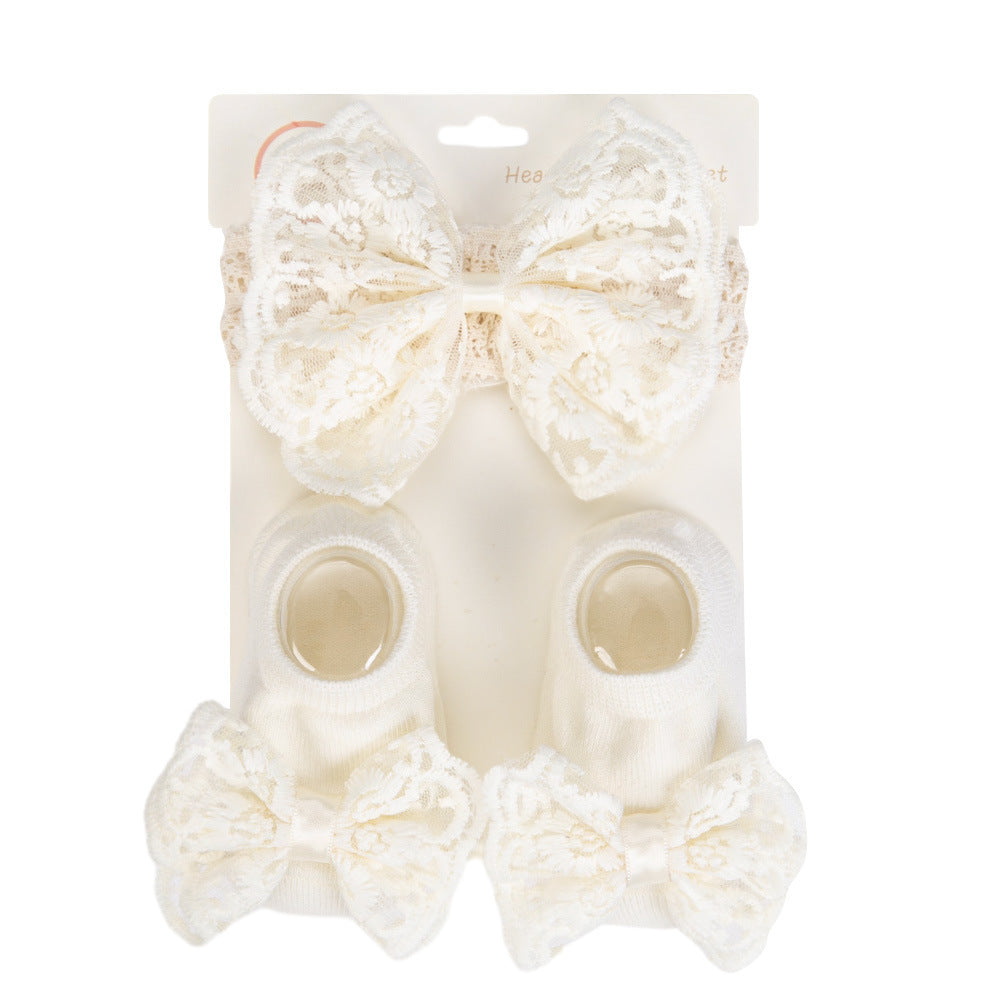 Vincha y media con moño de encajes