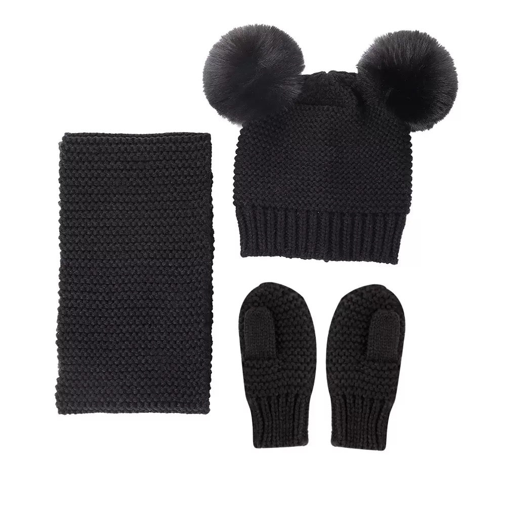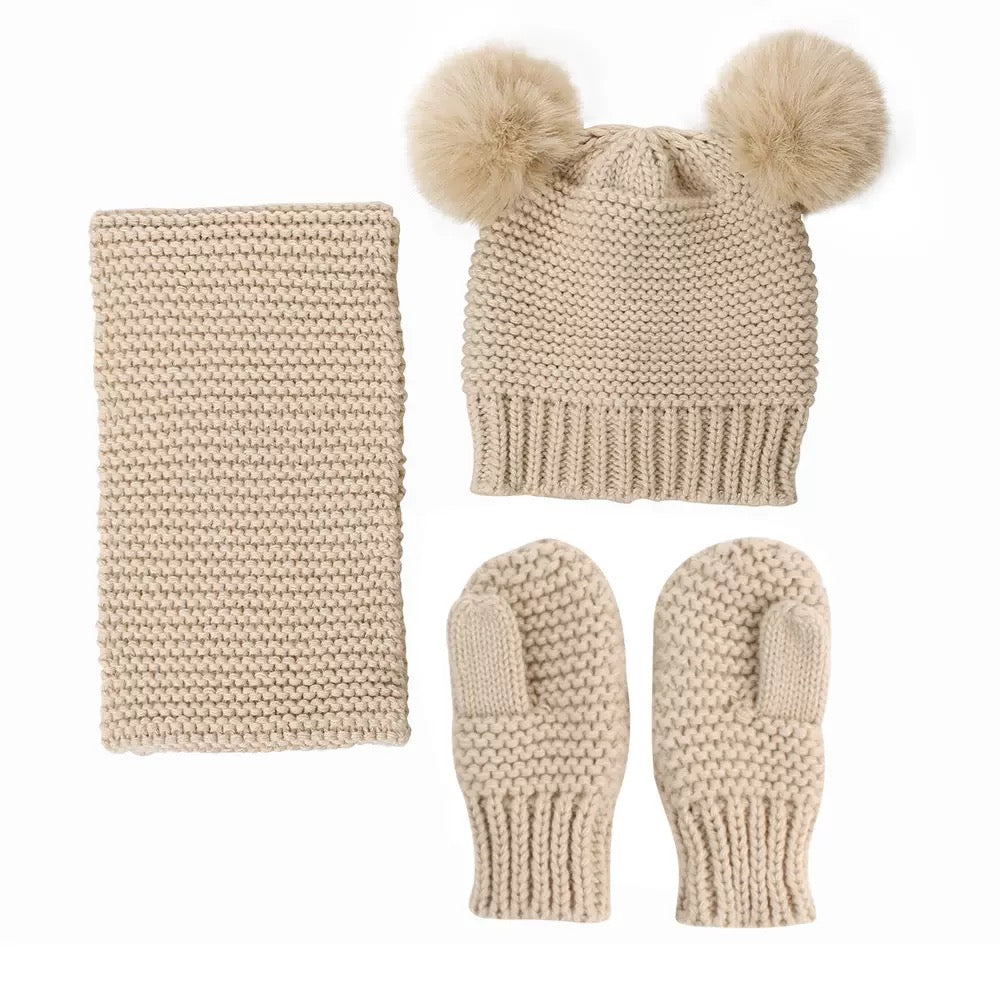 Gorra con orejas de hilo, bufanda y guantes