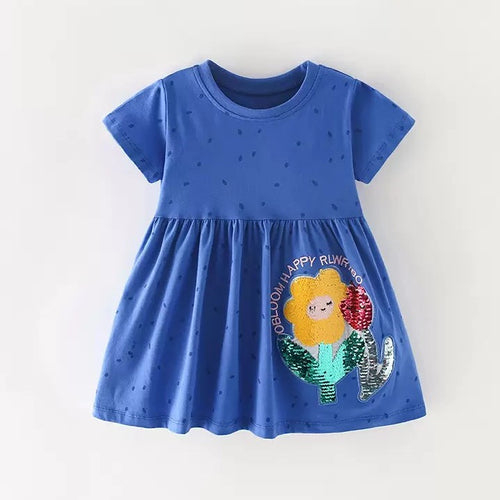 Vestido azul marino de unicornio y falda de tul con estampas de corazones