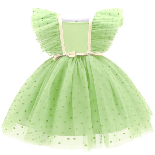 Vestido con manga abullonada, detalle de lentejuelas, volados de tul y vincha