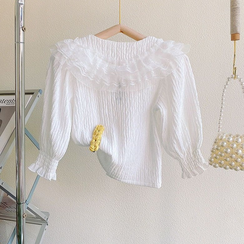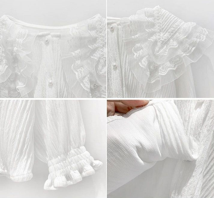 Camisa blanco con volados y encajes de tul