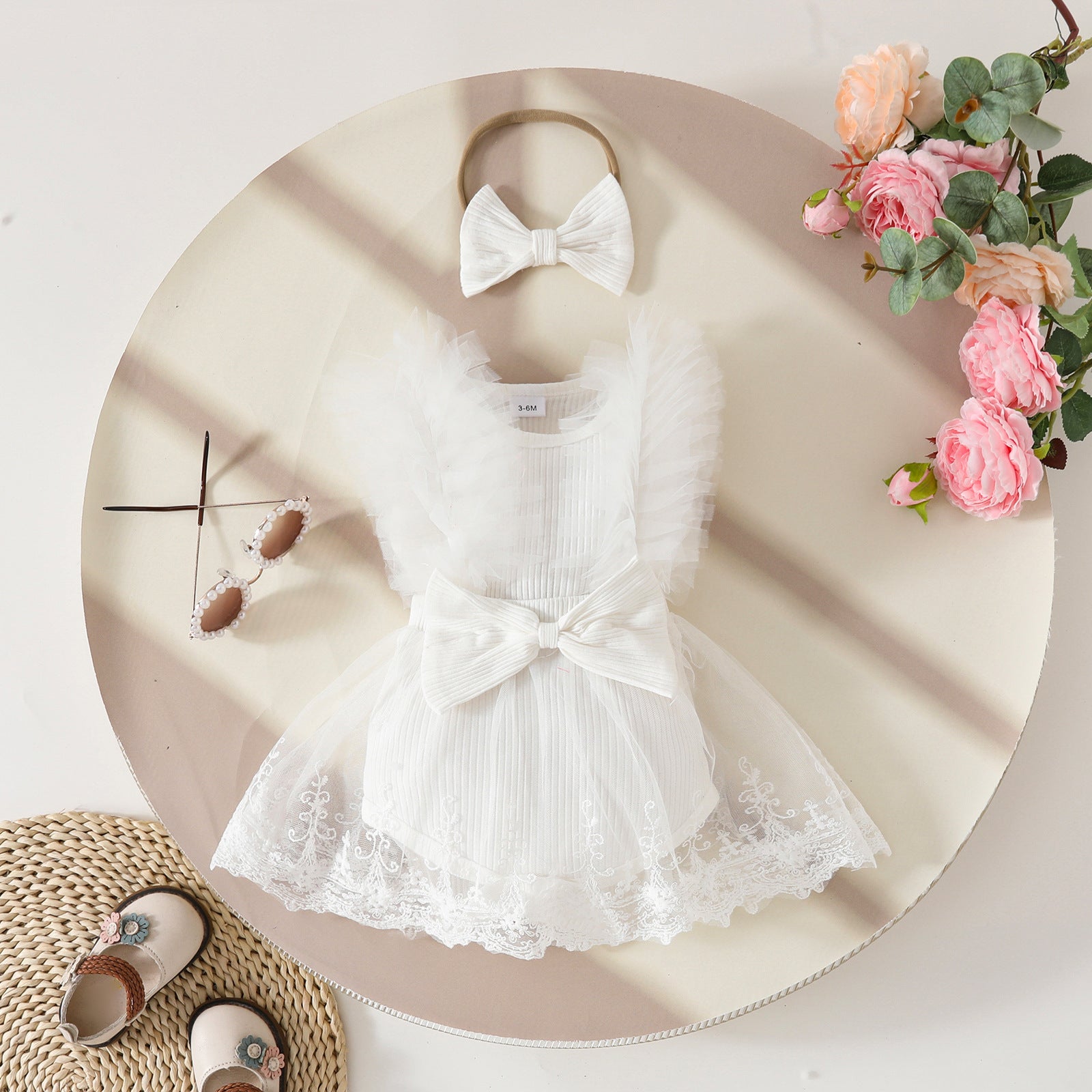 • Cargar imagen en el visor de la galería, Body vestido acanalado con volados de tul  y vincha