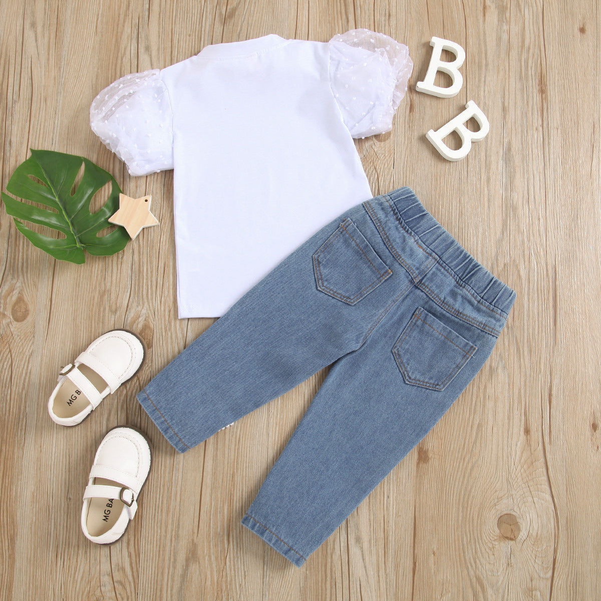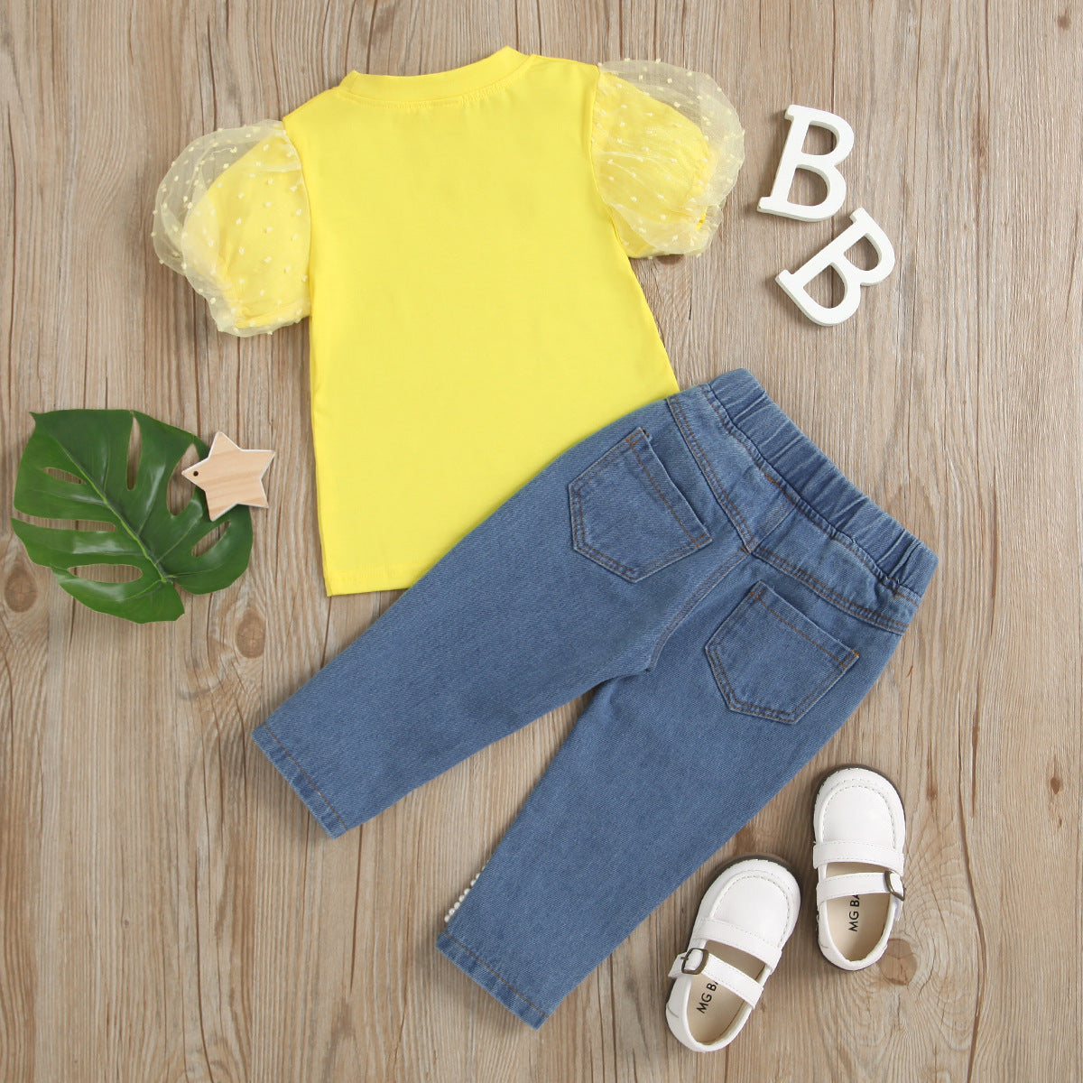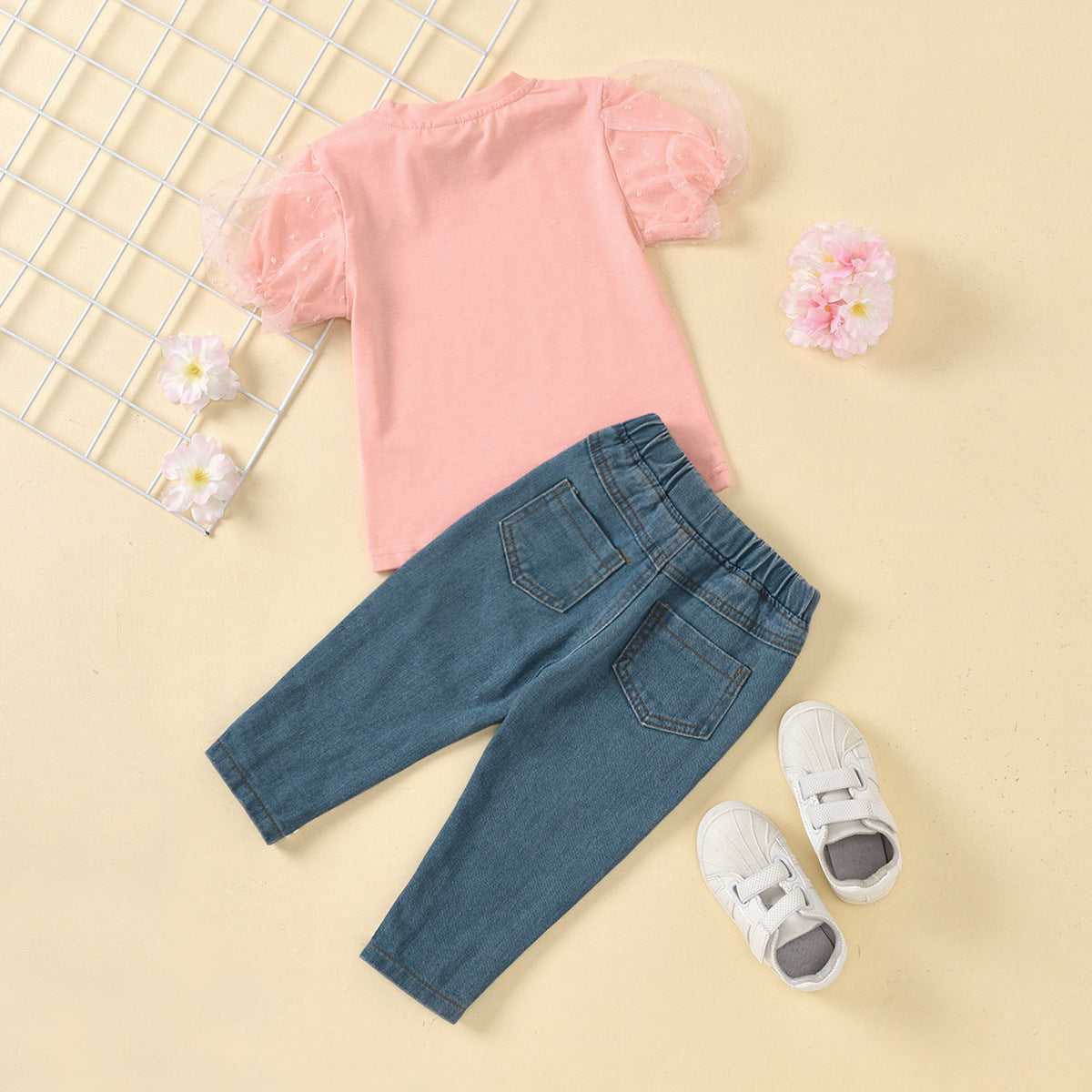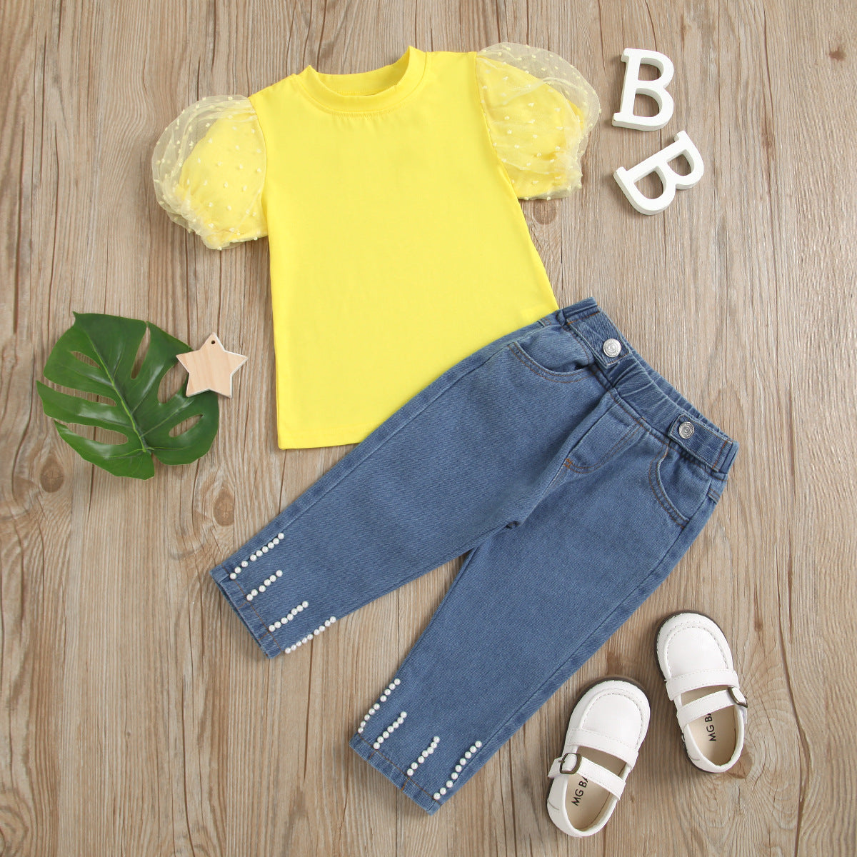 Blusa con mangas de tul abullonadas y capri con detalles de perlas