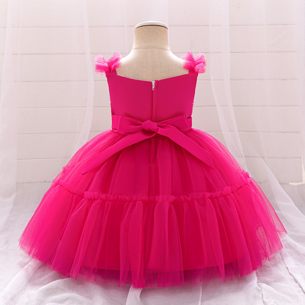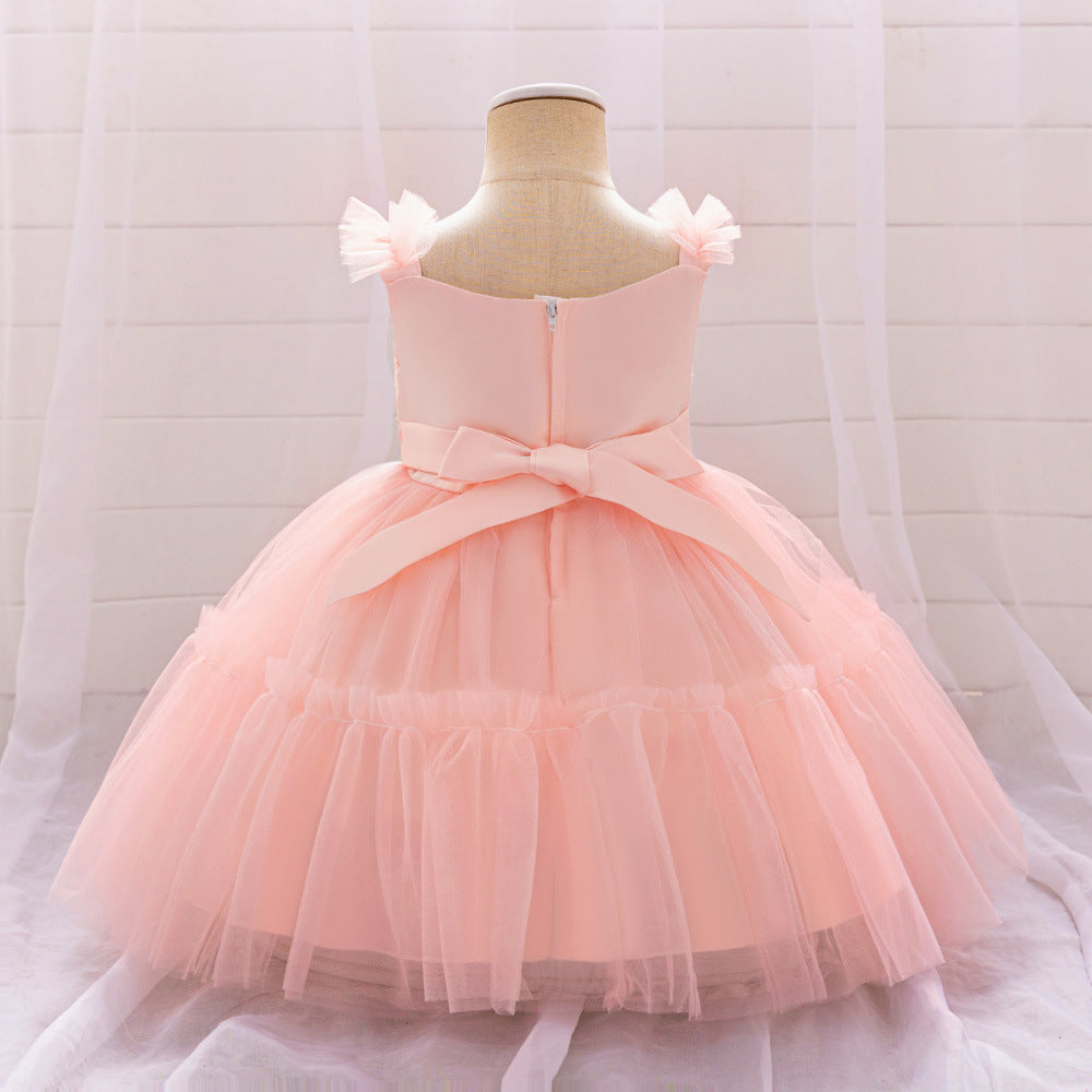 Vestido con encajes de flores y vincha