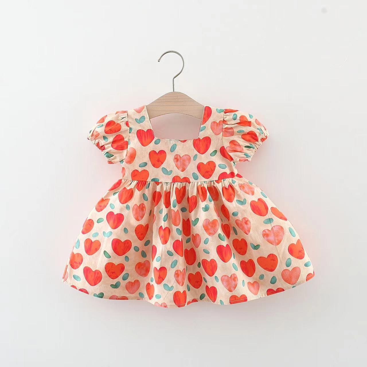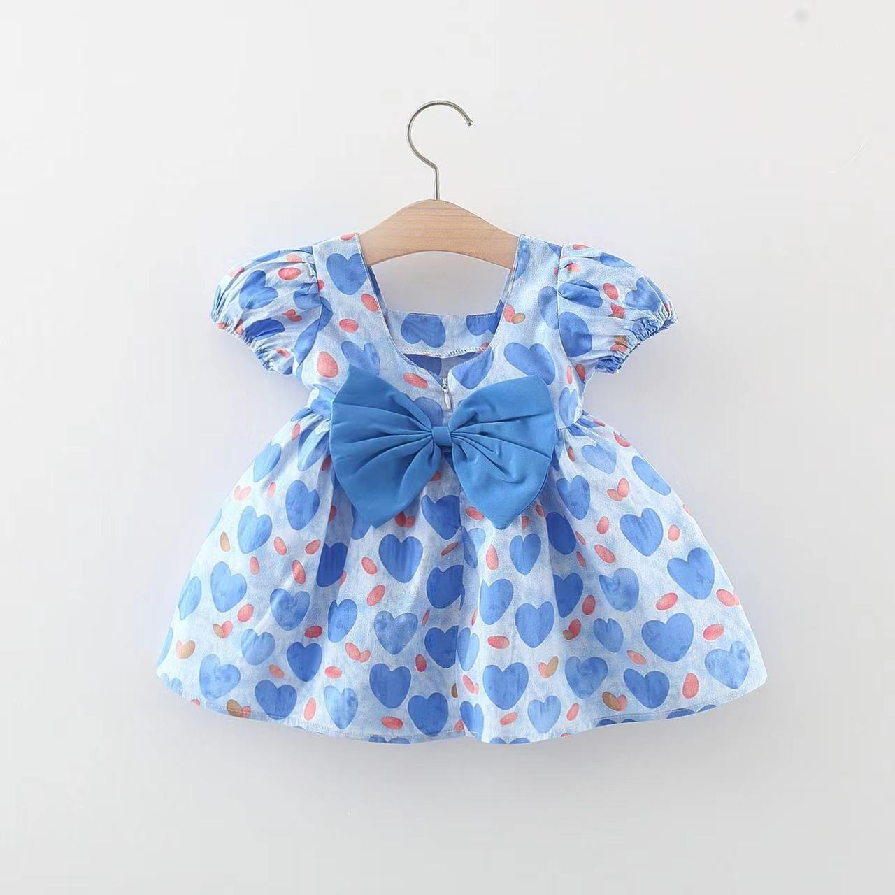 Vestido con estampas de corazones, mangas abullonadas y moño
