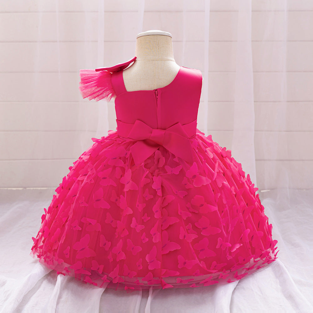 Vestido con moño en el hombro y falda de tul con mariposas