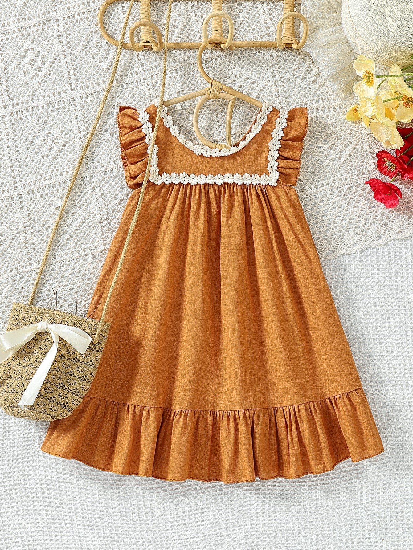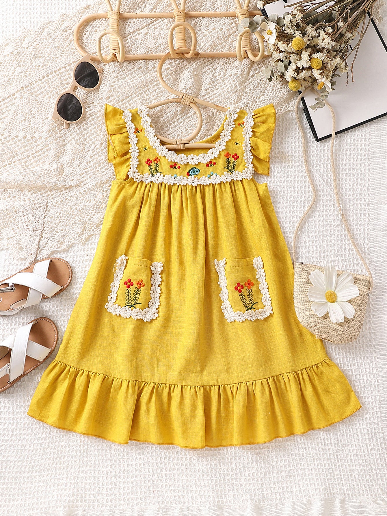 Vestido con bordados de flores y volados