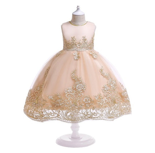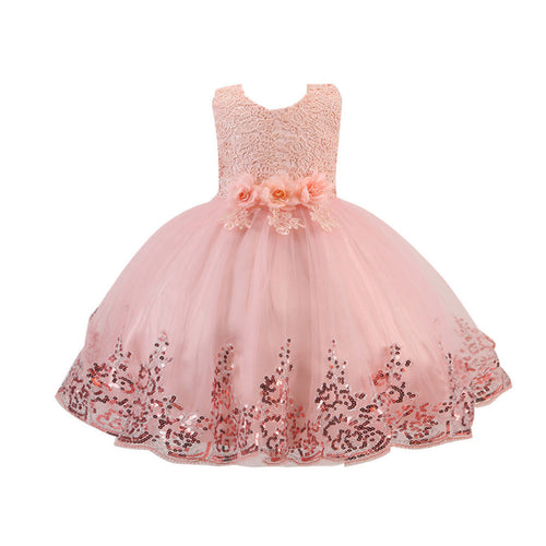 Vestido con flores en la cintura, detalles de encaje y lentejuelas