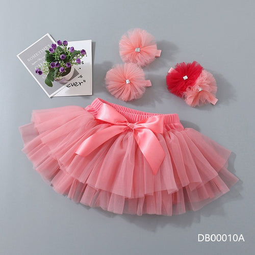 Cubre pañal de tutu rosa sandía + vincha + sandalias en cintas