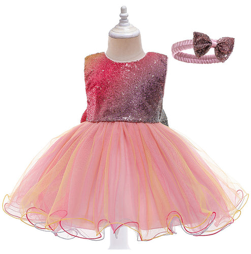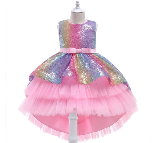 Vestido cola de pato de lentejuelas coloridas, escalonado de tul