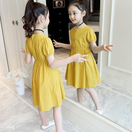 Vestido liso con bolsillos y botones