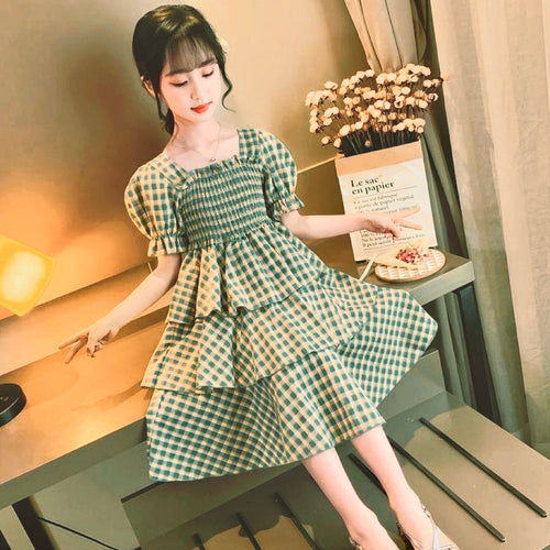 Vestido cuadrille engomado con falda escalonada