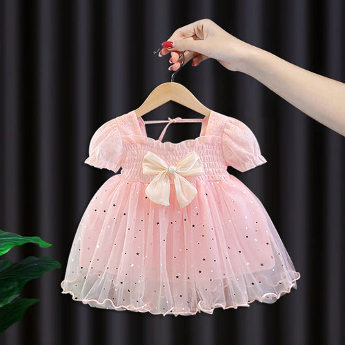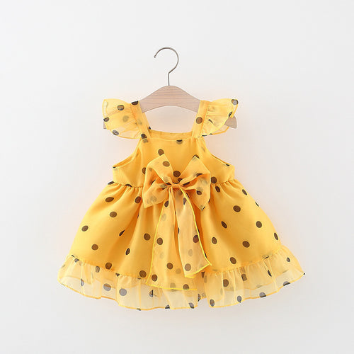 Vestido con motas y volados de tul con moño