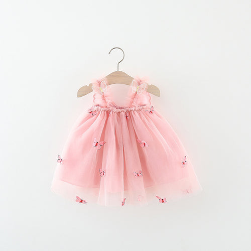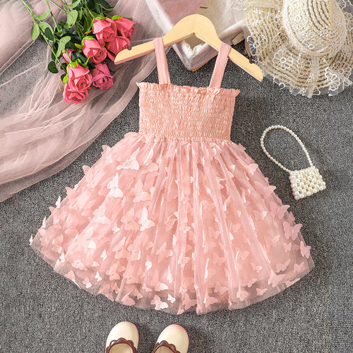 Vestido engomado con falda de tul de mariposas