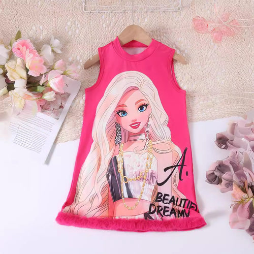 Vestido pink de Barbie con detalles peludos