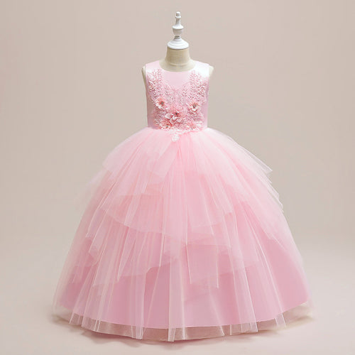 Vestido de tul largo con flores 3D