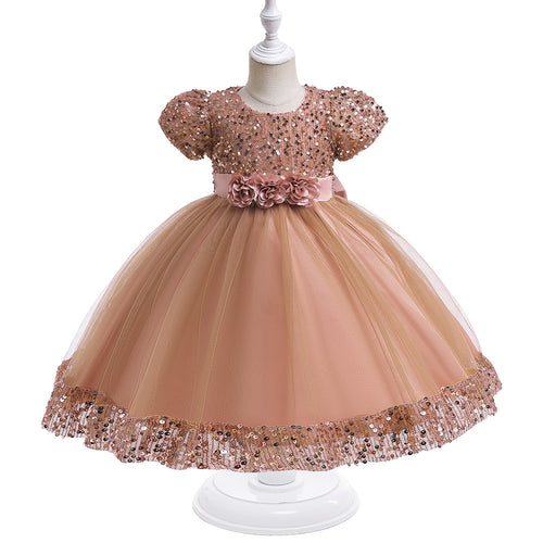Vestido con lentejuelas flores 3D y moño