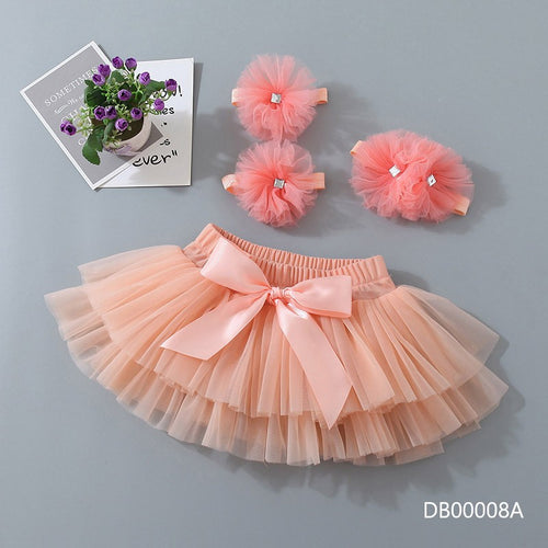 Cubre pañal de tutu salmón + vincha + sandalias en cintas