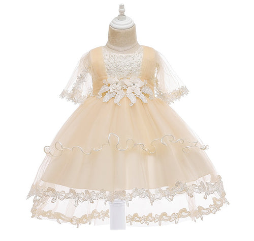 Vestido con mangas transparente, flores y encaje
