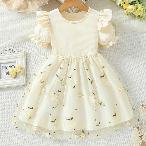 Vestido con bordados y tul con volados