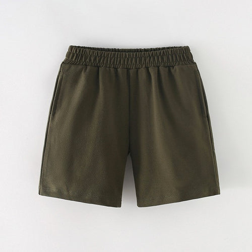 Remera naranja con diseño de cocodrilo y short verde musgo