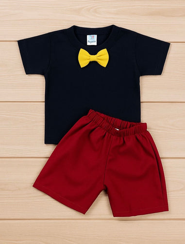 Remera negra con moño y short rojo estilo Mickey Mouse