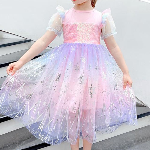 Vestido con detalles de lentejuelas, luces y manga princesa de tul