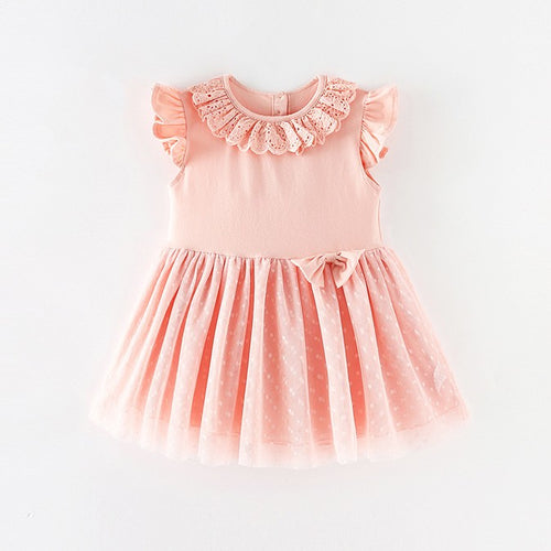 Vestido rosa, falda de tul con lentejuelas y vincha estilo sirena