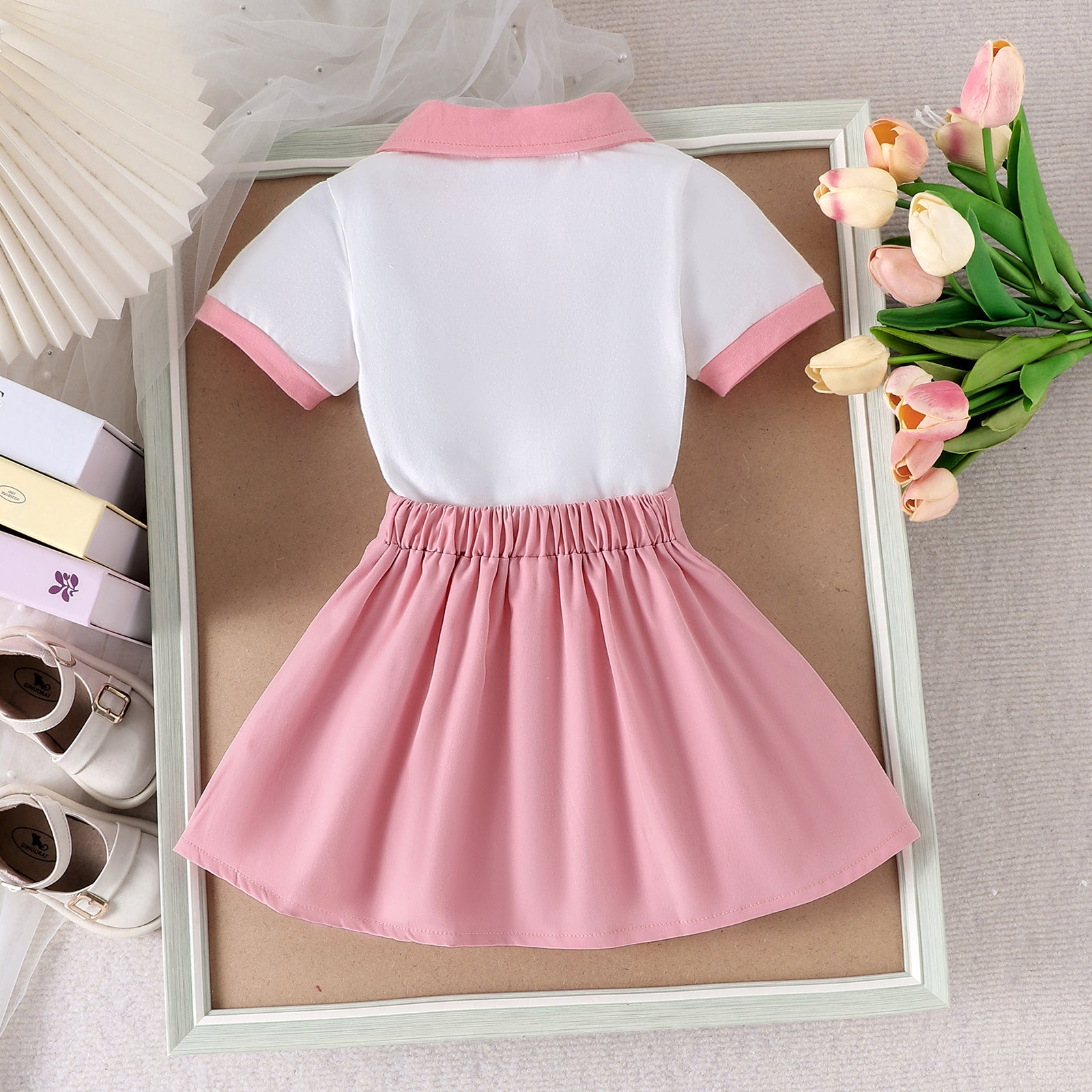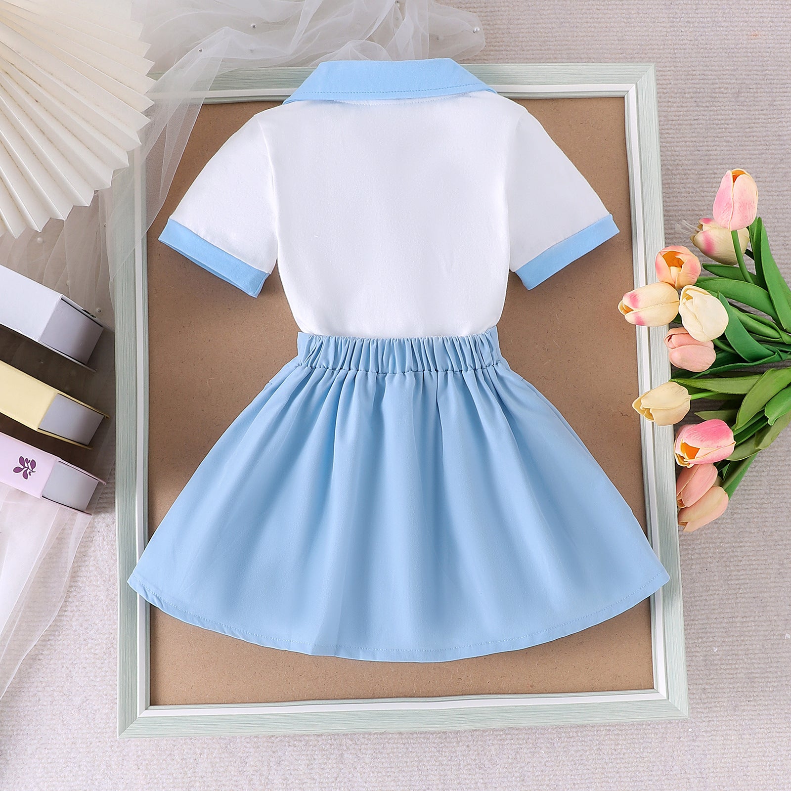 Blusa blanco con cuello y pollera tableada