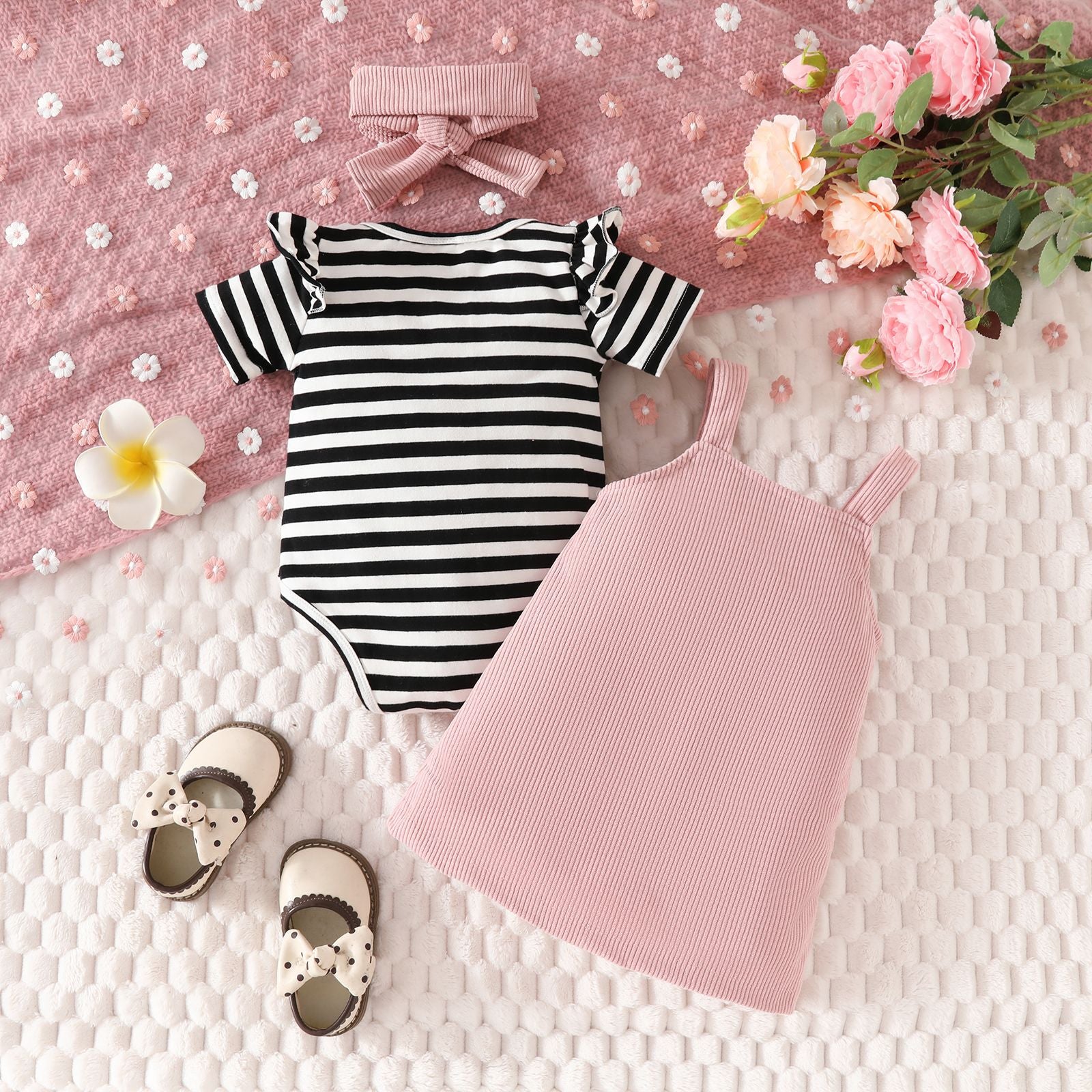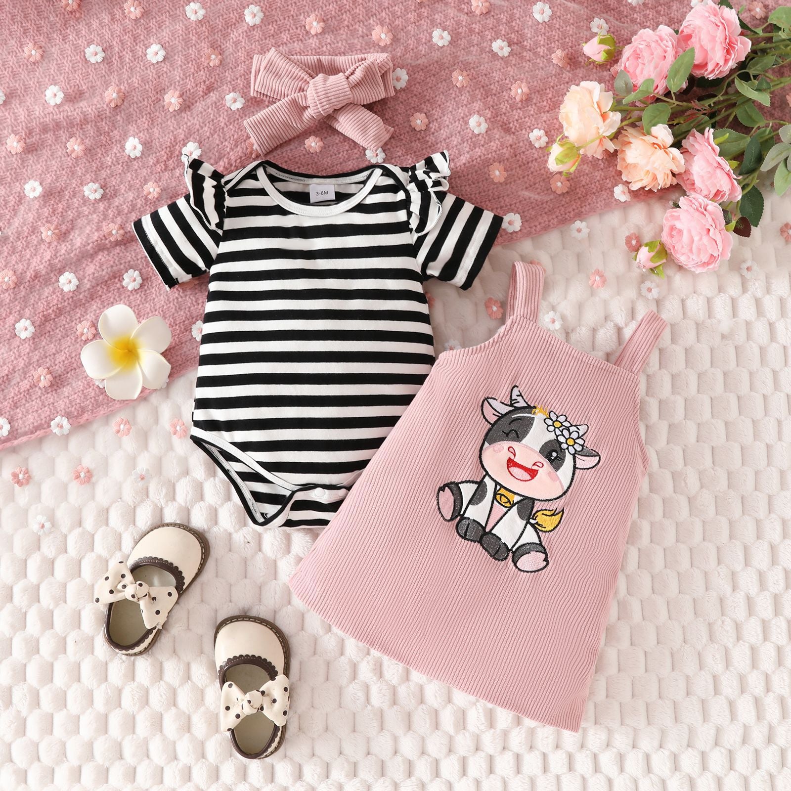 Body a rayas con vestido rosa viejo corderoy de vaca y vincha