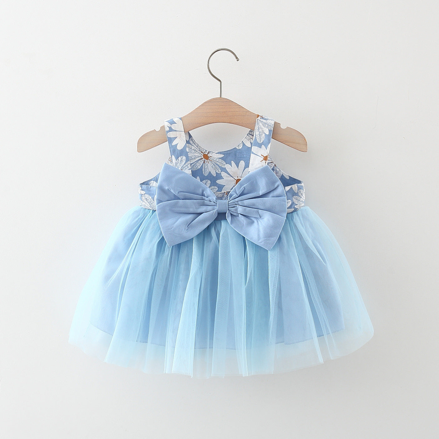Vestido de tul con estampas de flores y moño