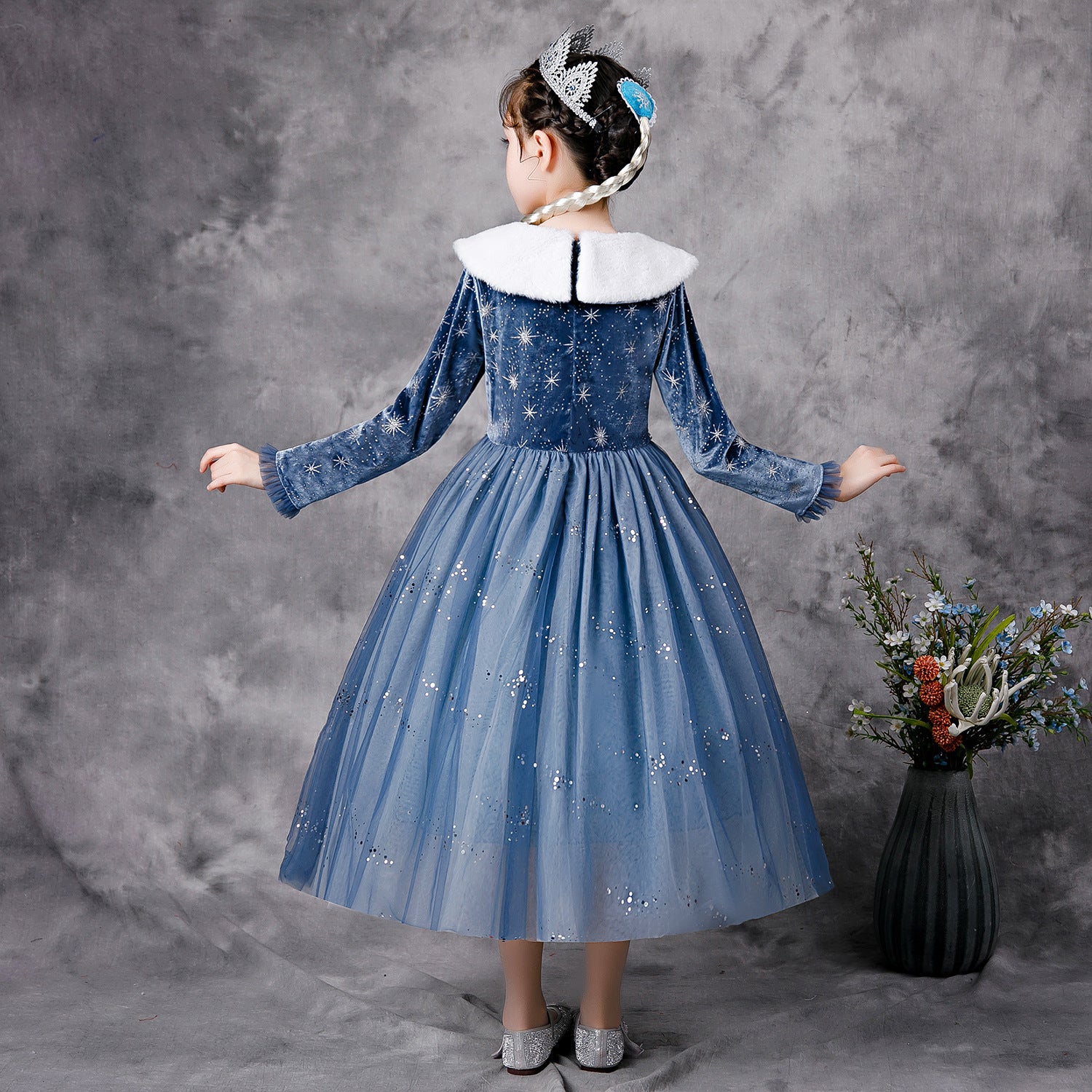 Vestido azul con cuello blanco estilo Elsa de Frozen