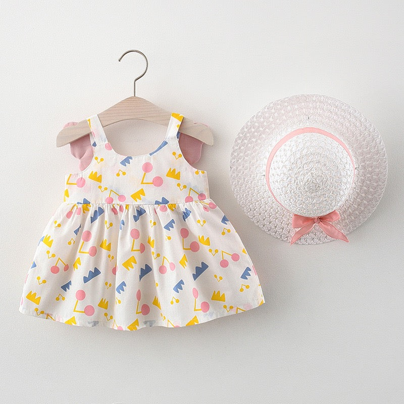 Vestido con estampas, alas y sombrero