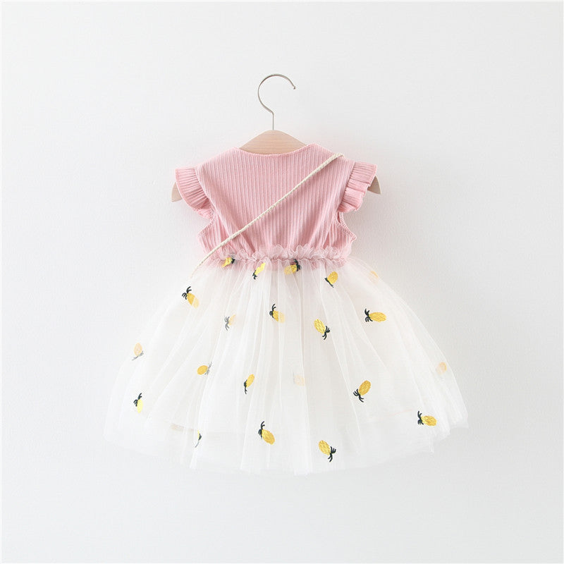 Vestido acanalado, falda de tul con bordado y peluche de piña
