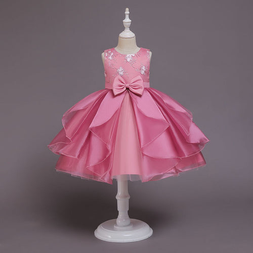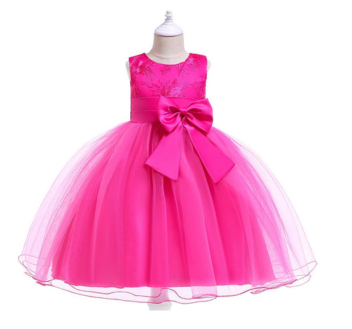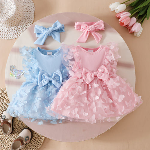 Vestido azul de un solo hombro estampado con tul rosa y moño