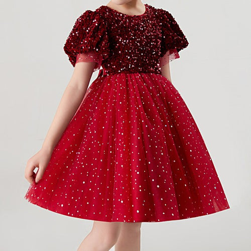 Vestido de tul con lentejuelas y brillo con mangas abullonadas