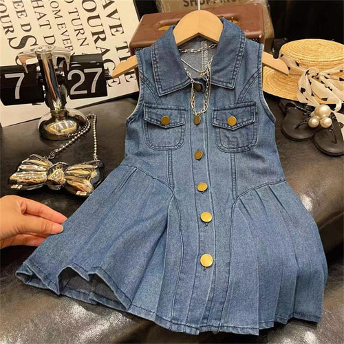 Vestido de jeans tableado con botones