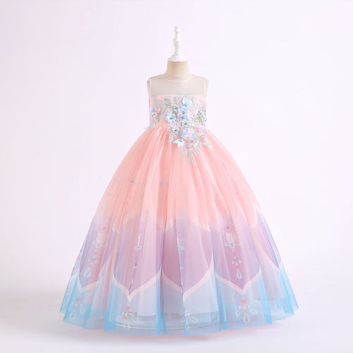 Vestido largo con bordado de flores y tul