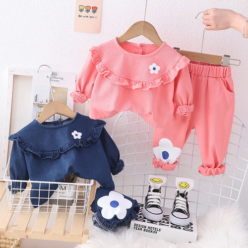 Buzo con cuello y volados de flor y pantalón liso