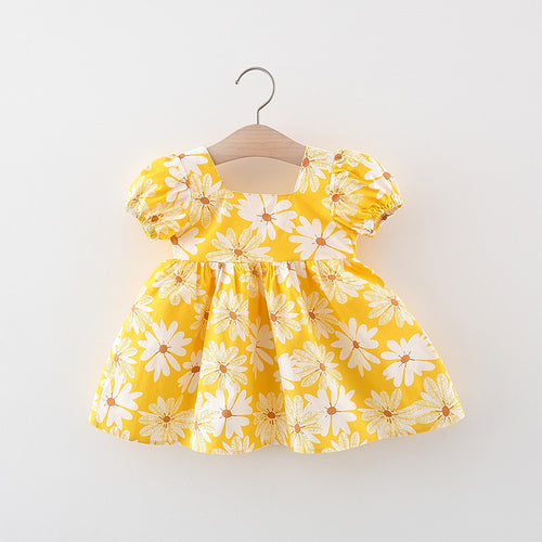 Vestido con mangas abullonadas y estampas de margaritas con moño
