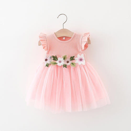 Vestido con detalles de flores y falda de tul