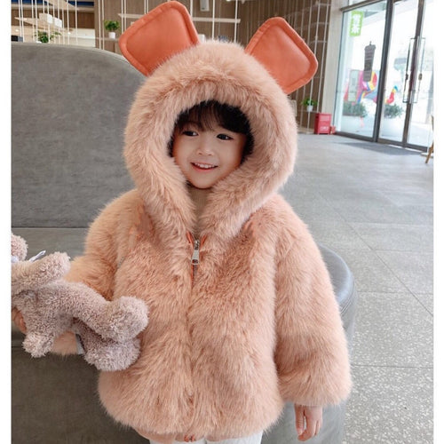 Campera salmón peludo con capucha y orejas