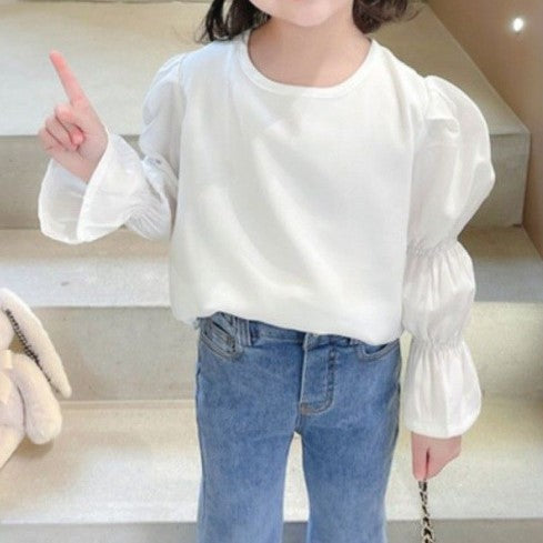 Blusa manga larga liso con mangas engomadas