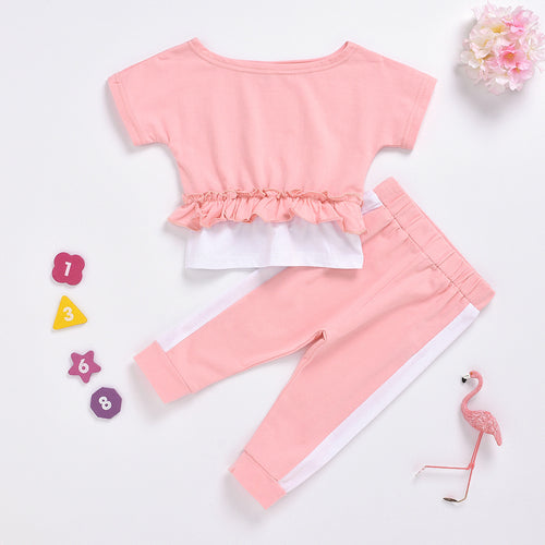 Remera con volados y pantalón rosa