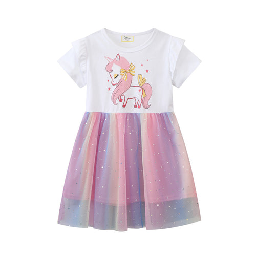 Vestido rosa con volado y falda de tul con estampas de corazones