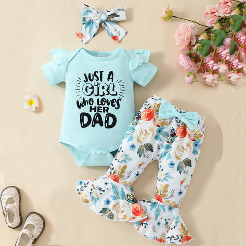 Body verde agua, pantalón pata ancha con estampas de flores y vincha
