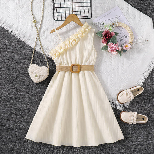 Vestido caqui engomado y falda con estampas de flores con cinto