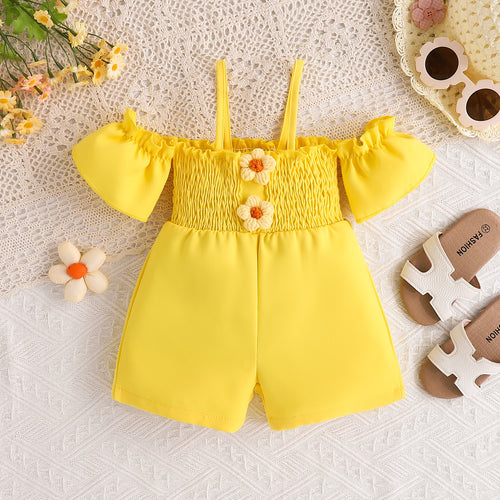 Enterizo amarillo engomado con hombros rectos y flores