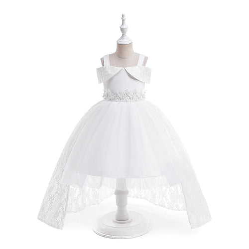 Vestido blanco largo de tul con moño