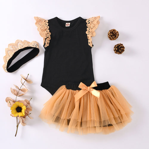 Body negro con tutu naranja y corona vincha
